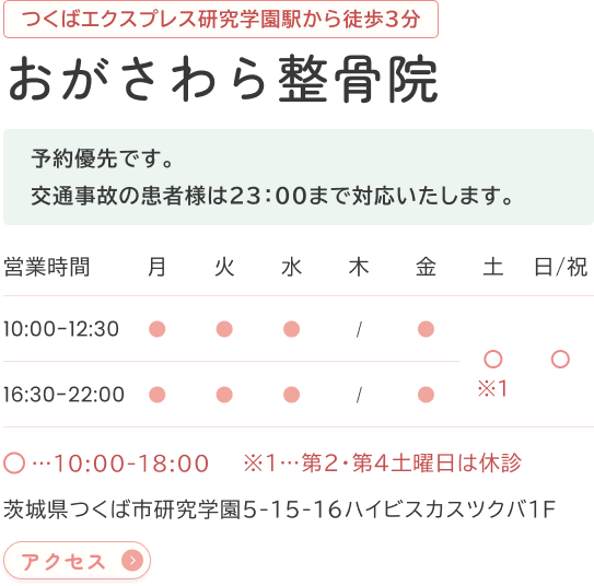 おがさわら整骨院では、お一人おひとりのお悩みに寄り添いながら、