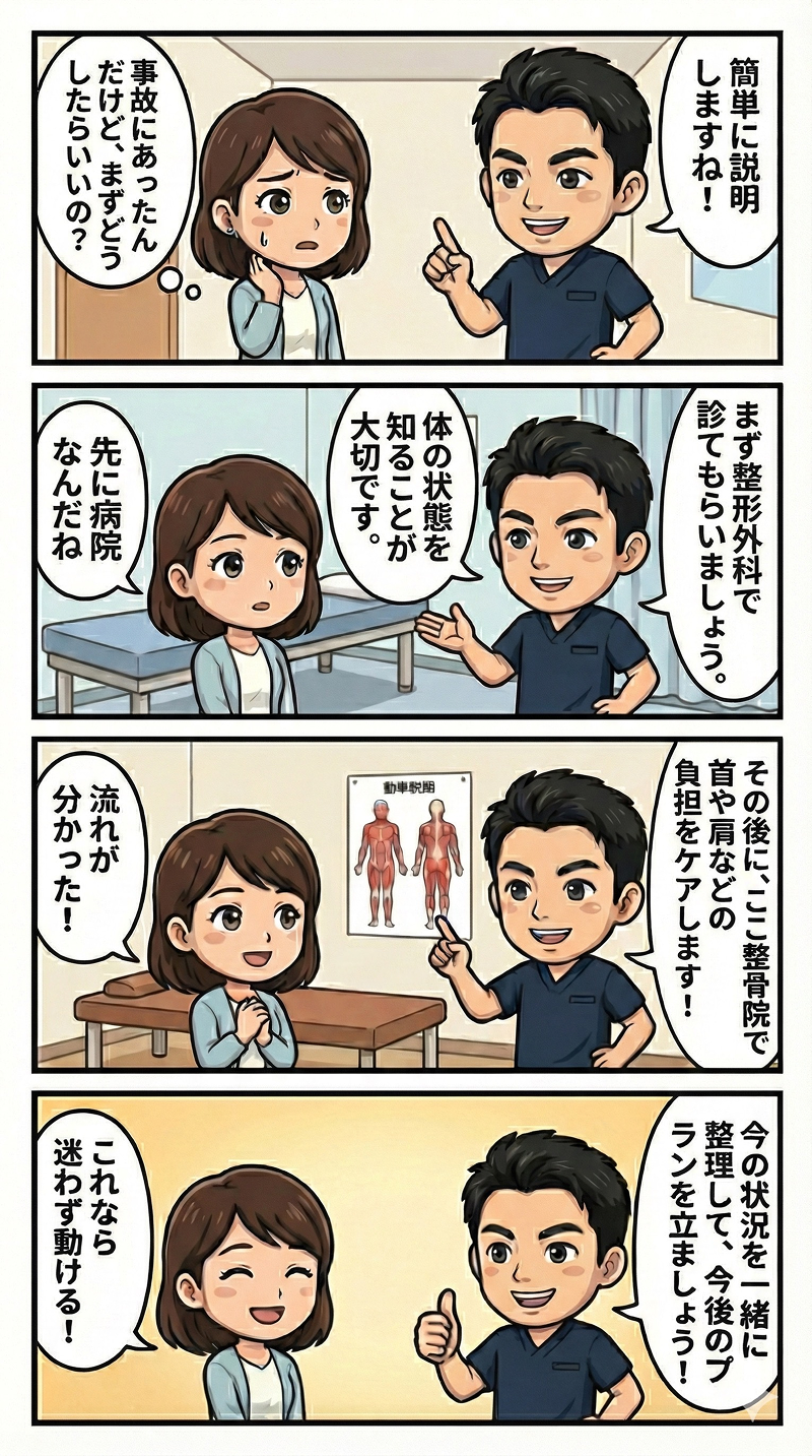 【交通事故後の流れ】病院と整骨院、それぞれの役割