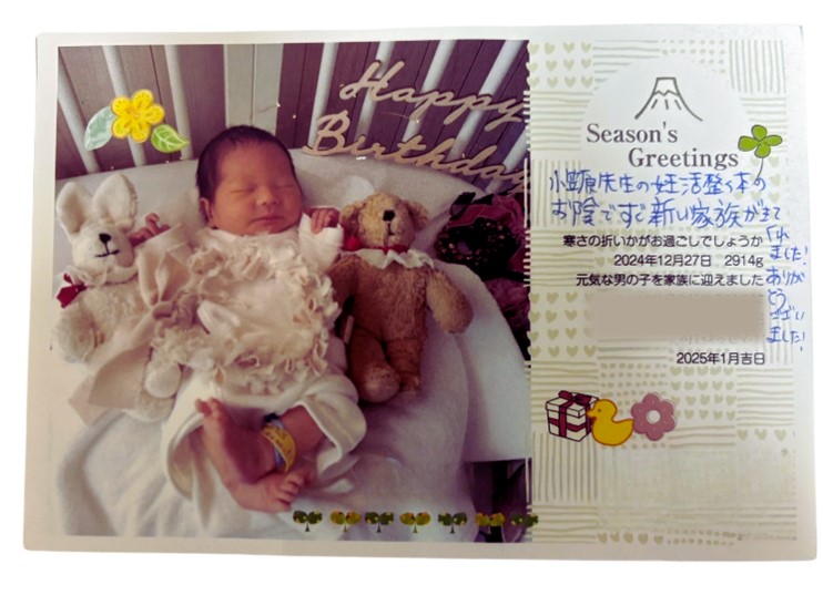 『小笠原先生の妊活整体のお陰ですぐ新しい家族がきてくれました!ありがとうございました!』
