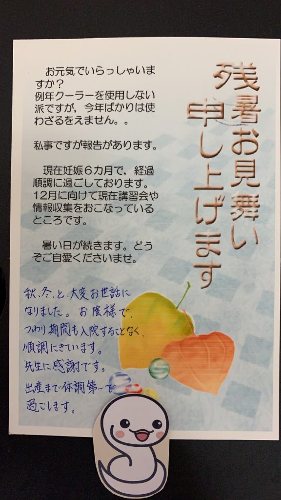 妊活の患者さんから残暑見舞いを頂きました~^_^