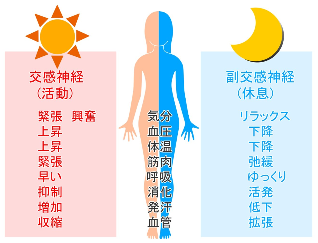 2でも書いてあるように体温調整の機能がうまくいかなくなると、体も冷えやすくなり血流が悪くなり、体も緊張して、自律神経系が乱れやすい状態になることが多いです。