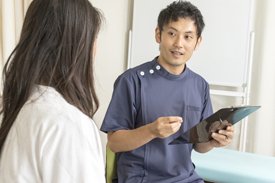 炎症が収まったら体の調子を見ながら徐々に手技治療を行っていきます。身体全体の状態をよく見て、腰回りの骨盤を整えたり、腰の負担を減らせるようなアドバイスもしたりいたします。