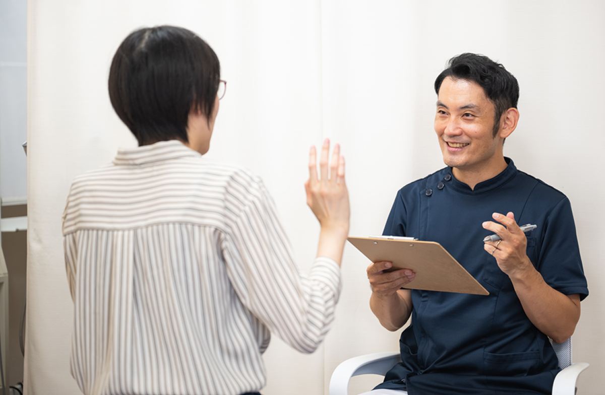 一時的な痛みの緩和ではなく、原因を徹底的に見極め、施術を行います。初回は丁寧にカウンセリングし、模型や画像でわかりやすくご説明します。納得して施術を受けられる安心の環境を整えています。